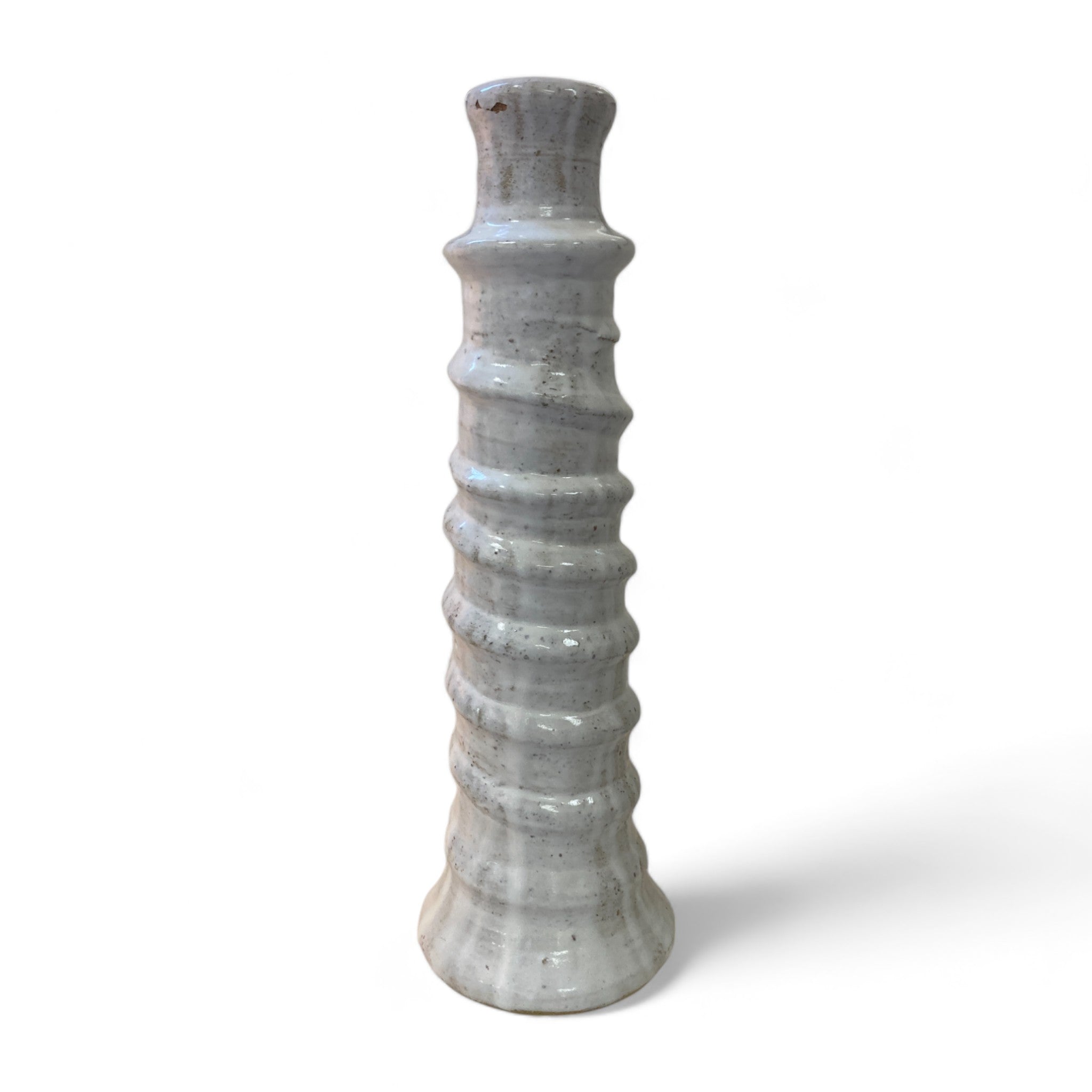 Create a unique space with this Large Twisted Moroccan Candlestick Holder. Hand-painted in white with a swirl ridge detail, this ceramic candle holder from Morocco adds a touch of personality to any room.
