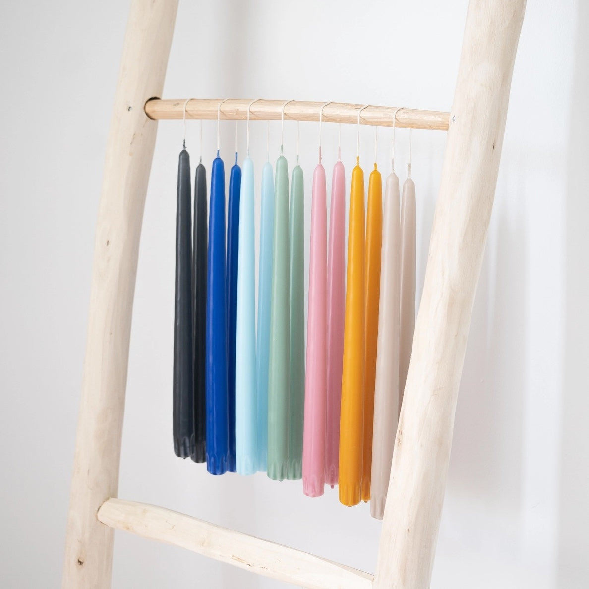 These taper candles are handcrafted in Canada and handover-dipped for a superior depth of color. Made with lead free cotton wicks and food grade paraffin wax. The interior of the candles remain white ensuring a clean and dripless burning that lasts approximately 11 hours. 7/8" base fits any standard taper holder.