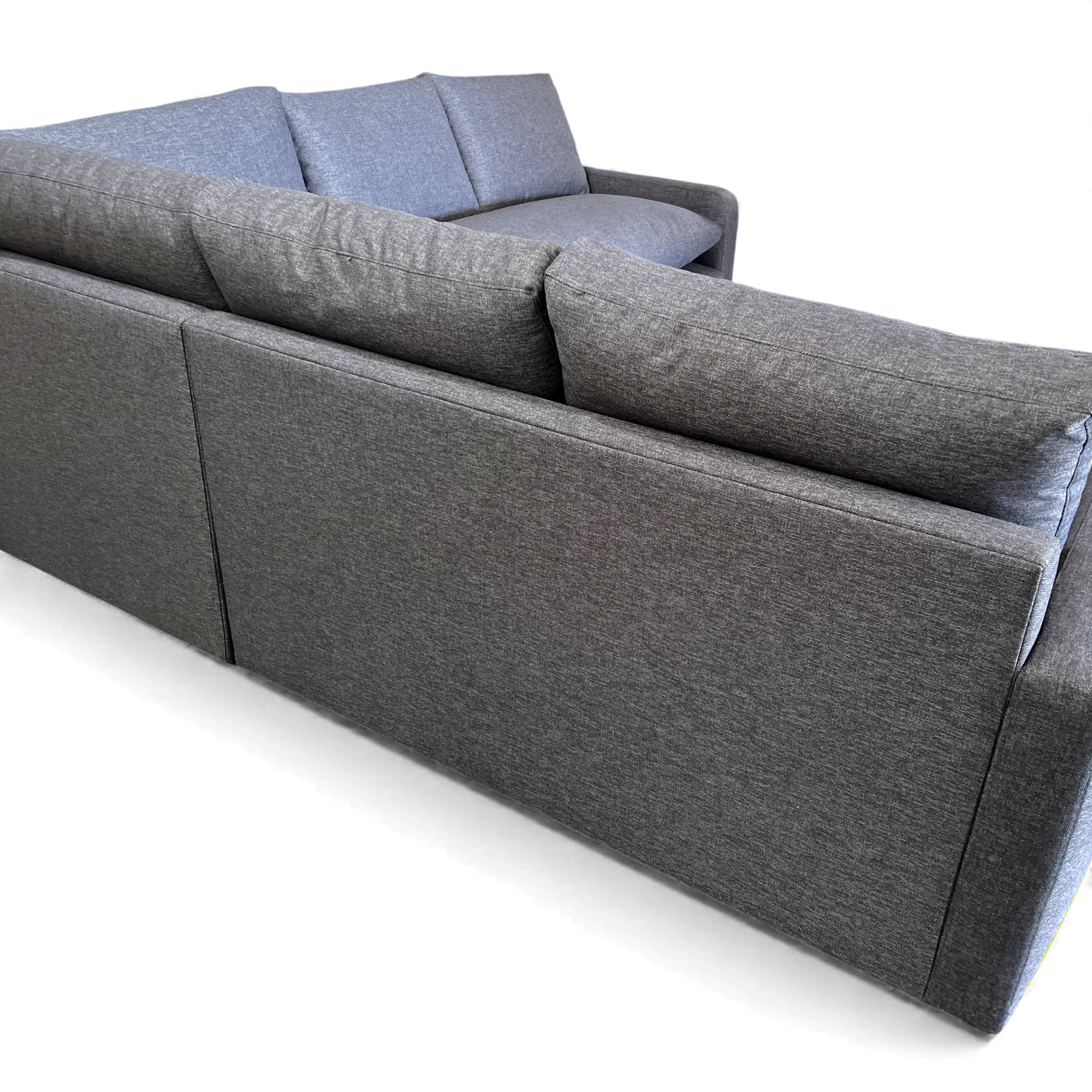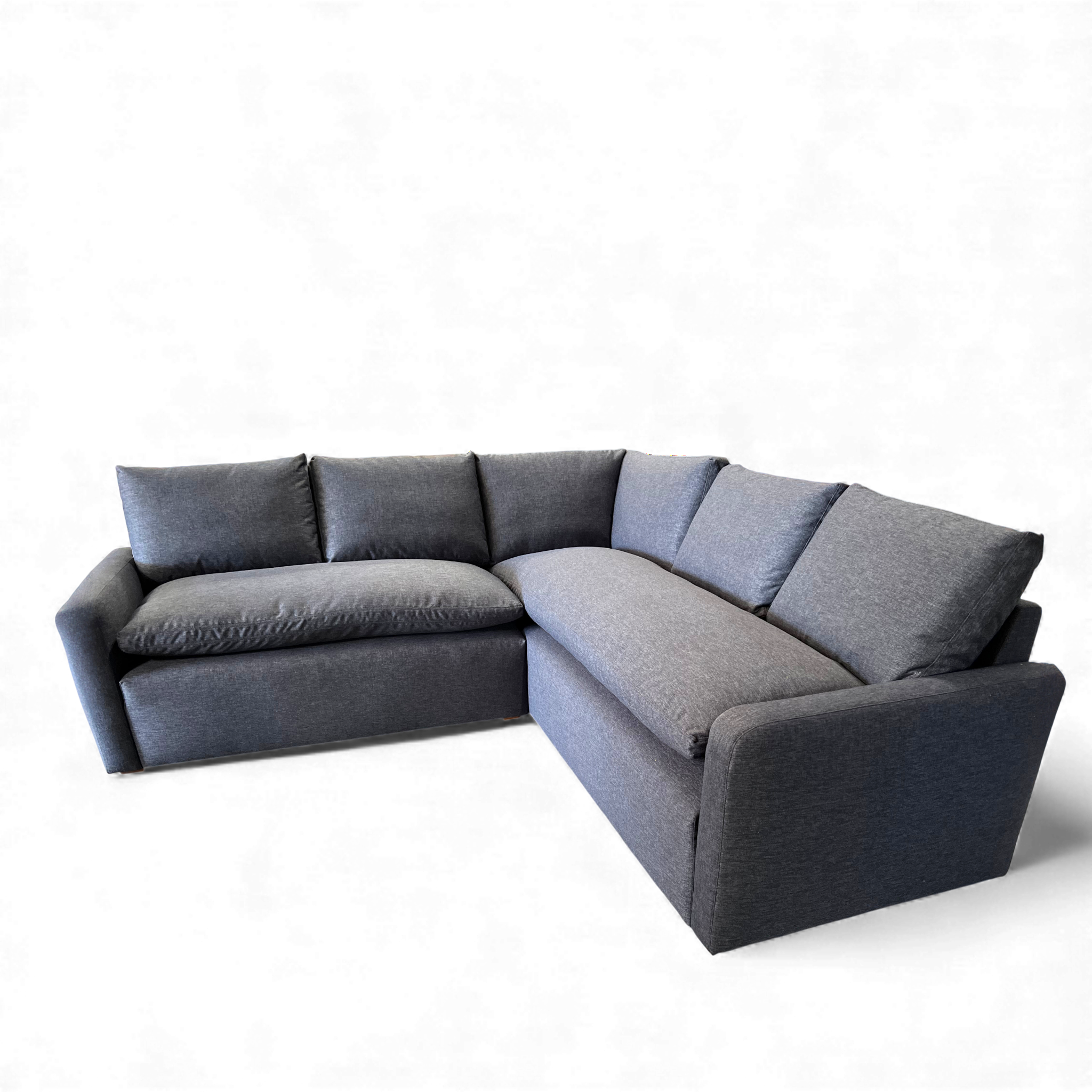 The model shown here is upholstered in Base Grade B Fabric (Neville Linen) and measures 84”L x 37" x 33", as well as a sectional upholstered in Base Grade A Fabric, but this is just one example of what we can create. Every Zoe Sofa is handcrafted in Los Angeles and tailored to your specifications.
