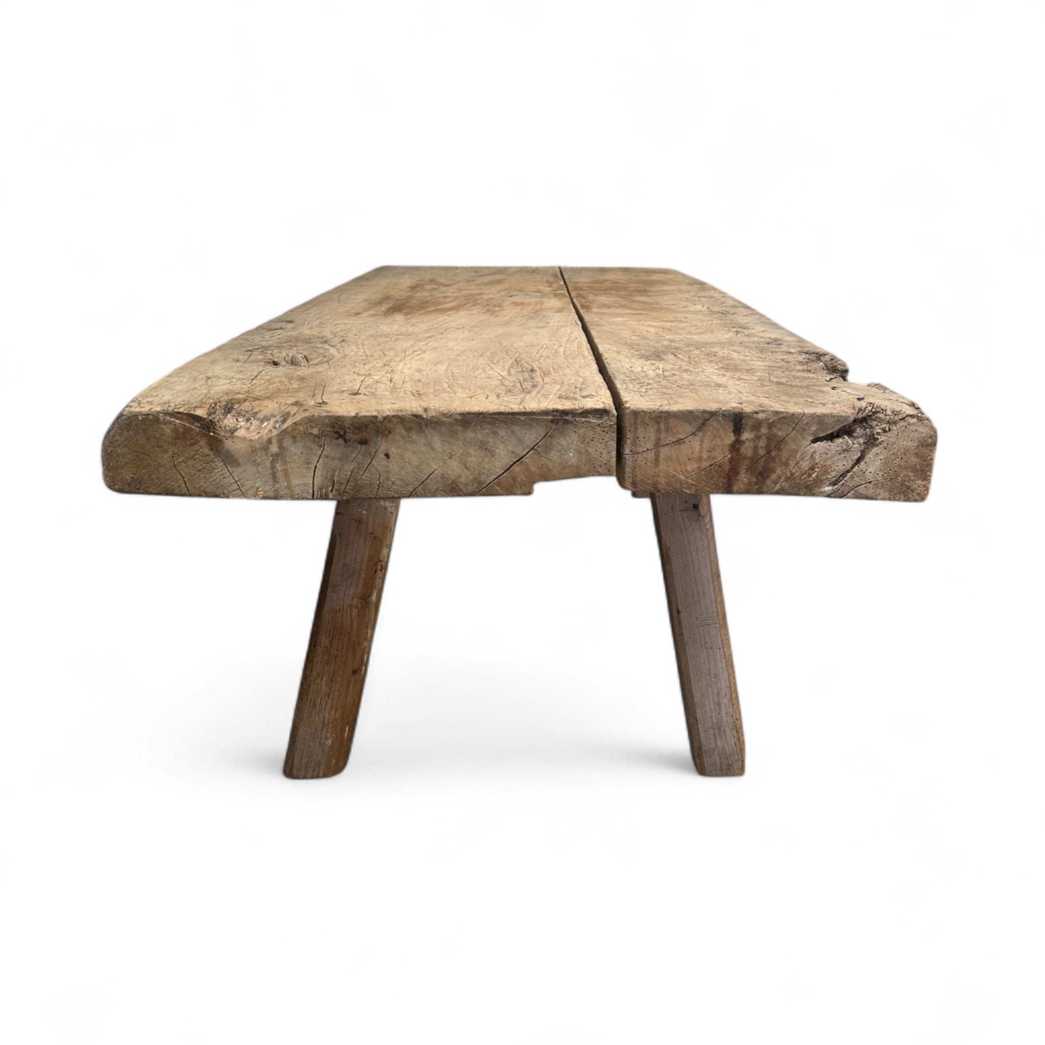 This rustic French butcher block coffee table features a beautifully aged wood top with natural imperfections and character that tell its story. The simple, sturdy legs and raw finish make it a perfect fit for farmhouse, bohemian, or industrial-inspired spaces. A unique piece that adds warmth and authenticity to any room.