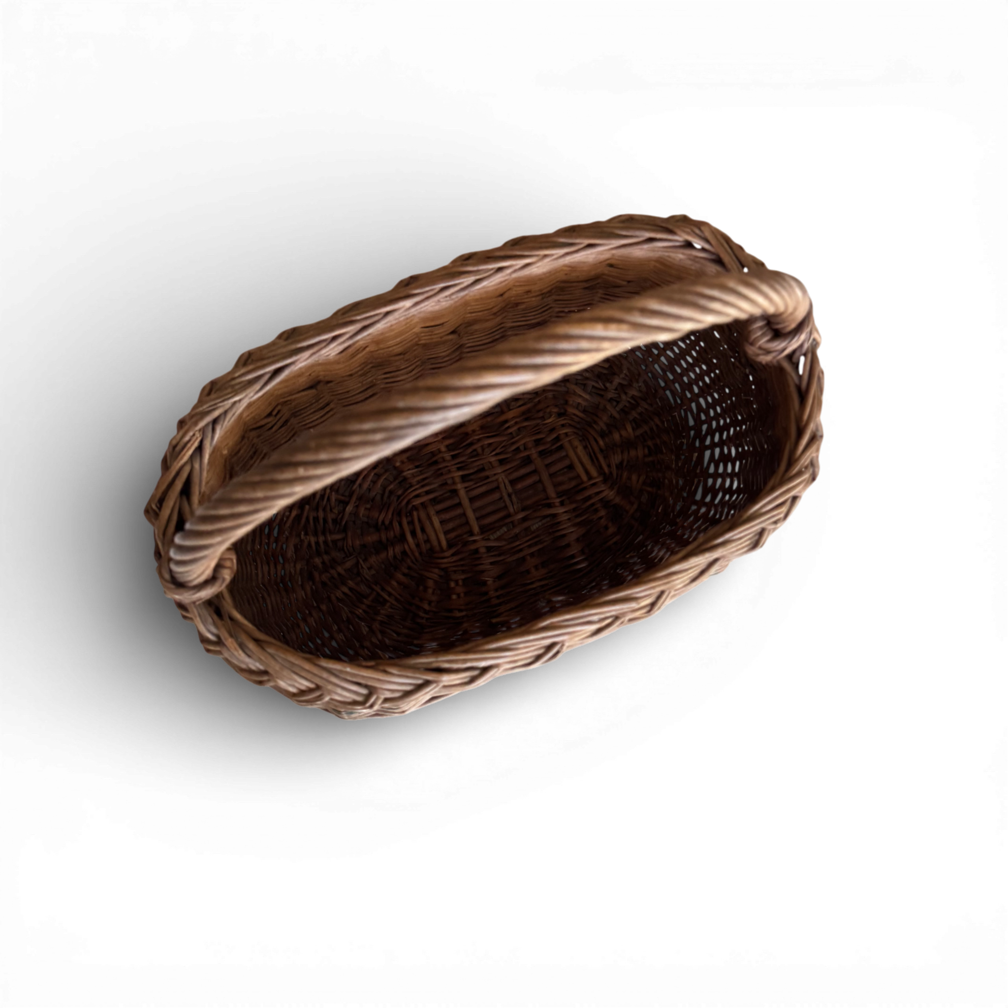 This 1970s vintage wicker basket, sourced from Budapest, features handwoven construction with a naturally aged patina. Subtle variations in weave, tone, and form make each piece unique. Ideal for storage, styling, or as a sculptural accent, it adds warmth and texture to any space.