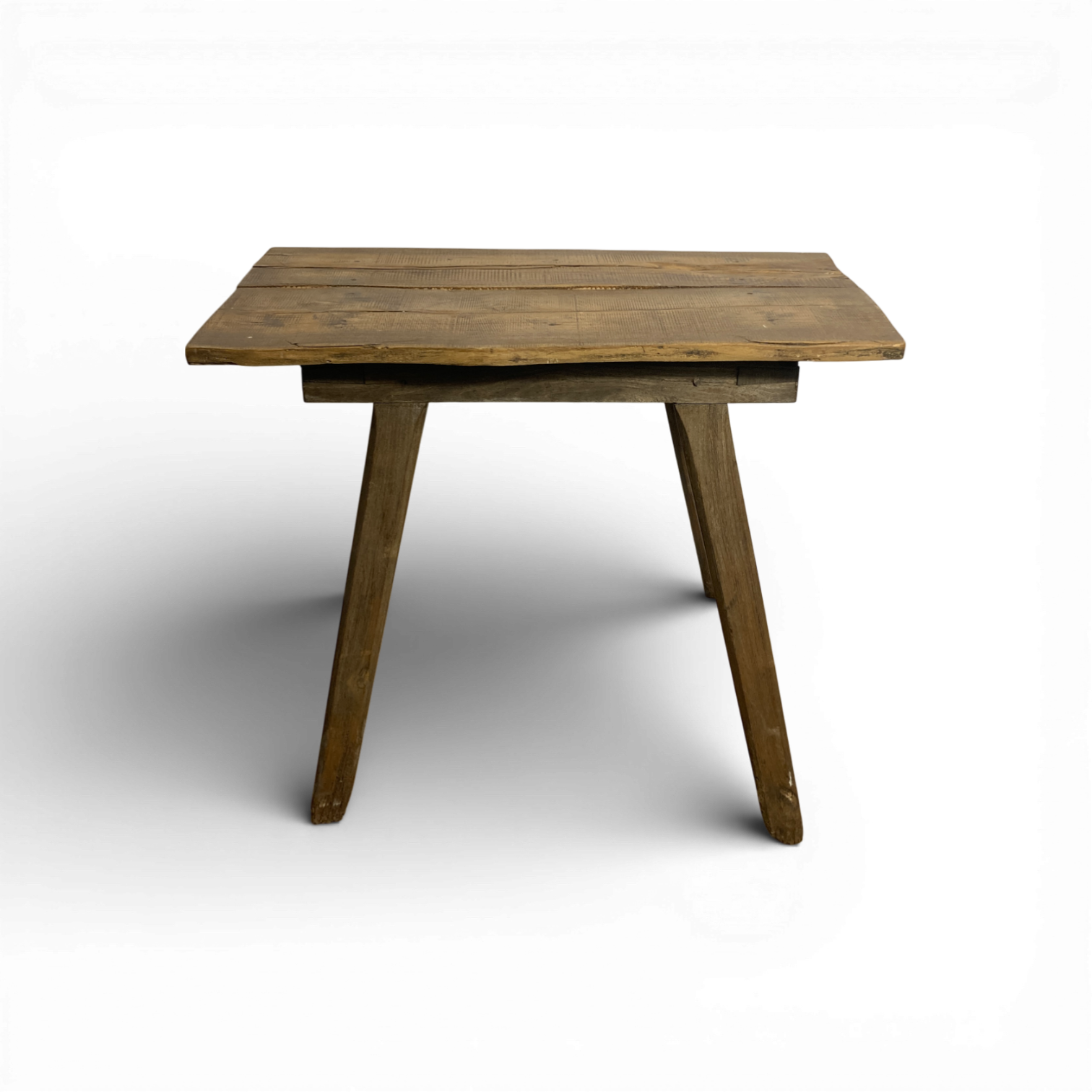 Slim, tapered legs lend the piece a light, utilitarian profile while maintaining structural integrity. Modest in scale yet rich in character, this table works effortlessly as a side table, lamp table, or accent piece in both modern and traditional interiors. A quietly sculptural form with authentic European provenance, each example is entirely unique.